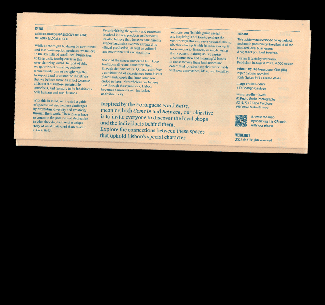 This is a digital version of the self-published printed guide to Lisbon's independent shops, originally published in August 2023. It indexed 12 unique businesses run by people committed to a more meaningful way of managing a shop in today's Lisbon.